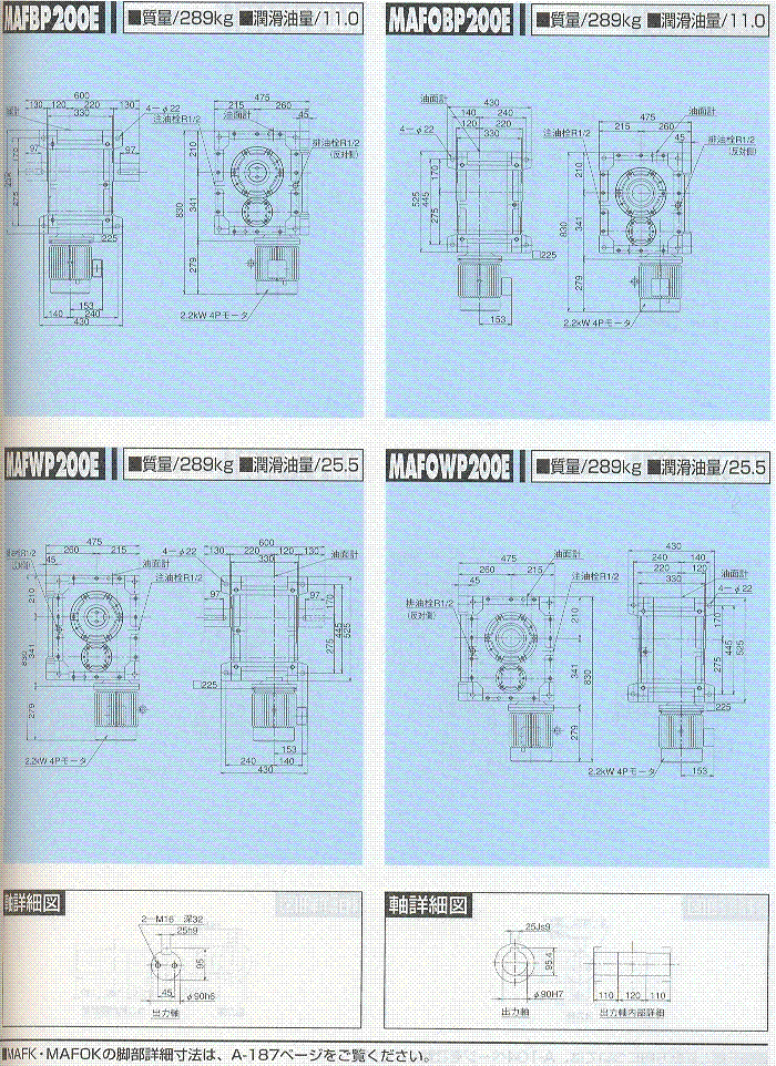 MAFP200-E,MAFOP200-E外形尺寸表(2.2kw)