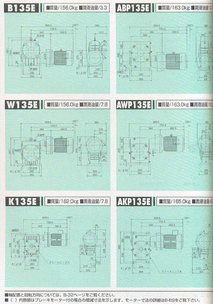 S/A/AO系列135E(一段式蝸輪減速機(jī))外形尺寸表 1