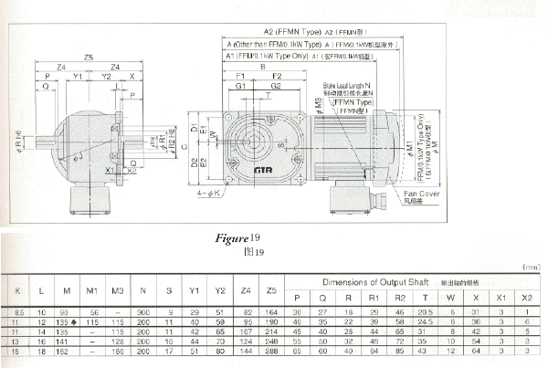 2.以上圖表說明了帶T型接線盒的齒輪減速機的規(guī)格