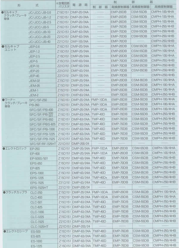 電磁離合sinfonia_shinko_神鋼電機(jī)制動(dòng)器型號(hào)—電源箱—控制器匹配表 表1 表2 表3