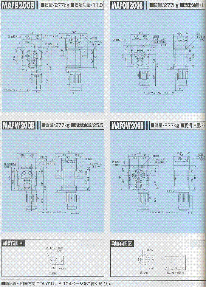 MAF200-B,MAFO200-B(3.7KW)外形尺寸表 1