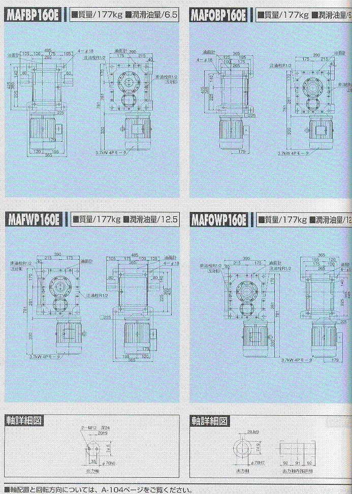 MAFP160-E,MAFOP160-E外形尺寸表(3.7kw)