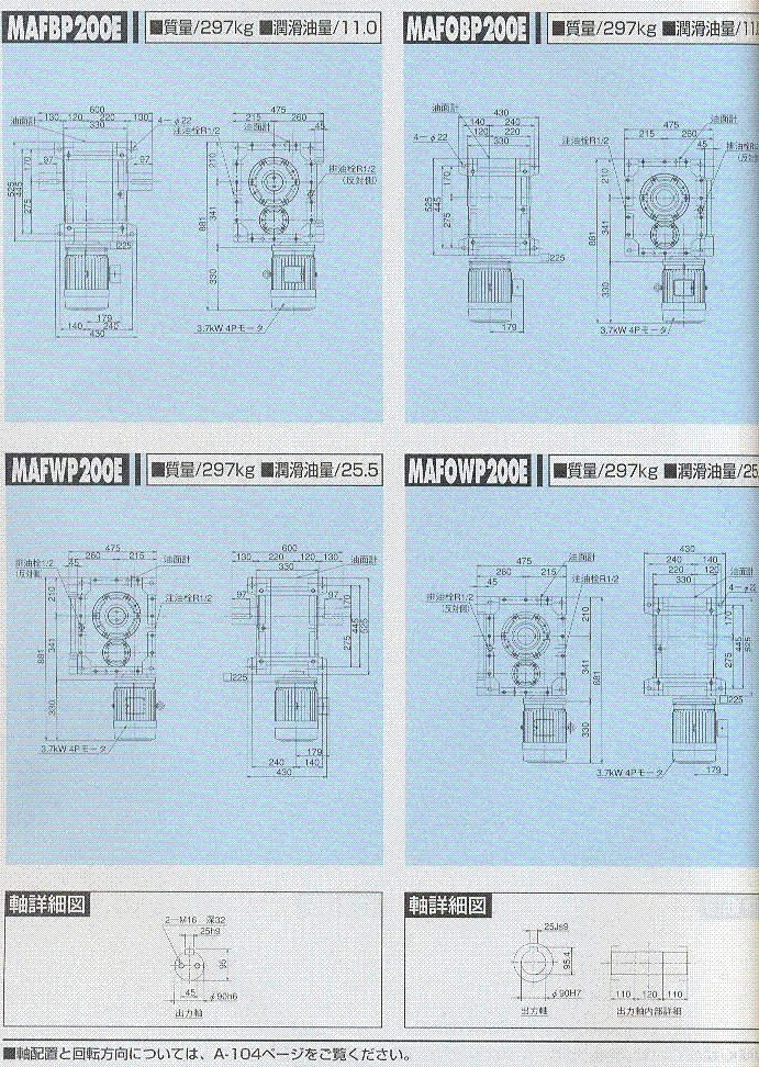 MAFP200-E,MAFOP200-E外形尺寸表(3.7kw)