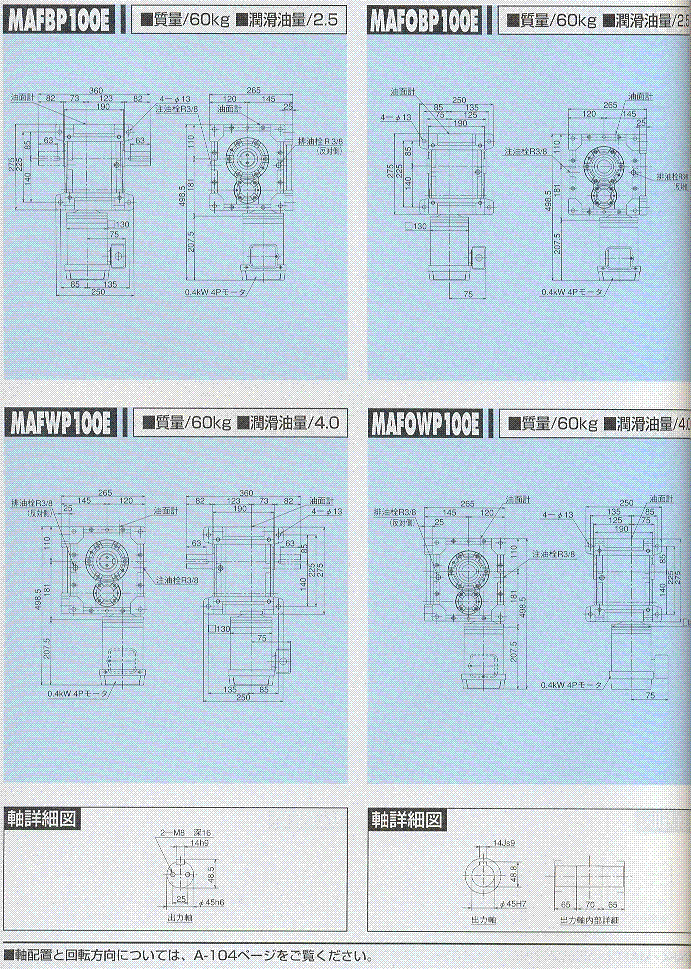 MAFP100-E,MAFOP100-E外形尺寸表(0.4kw)