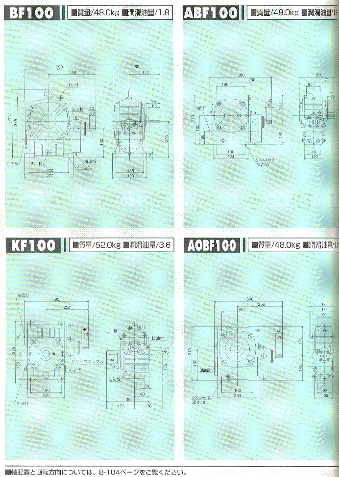 F/U/AF/AOF系列100(二段式蝸輪減速機(jī))外形尺寸表 1