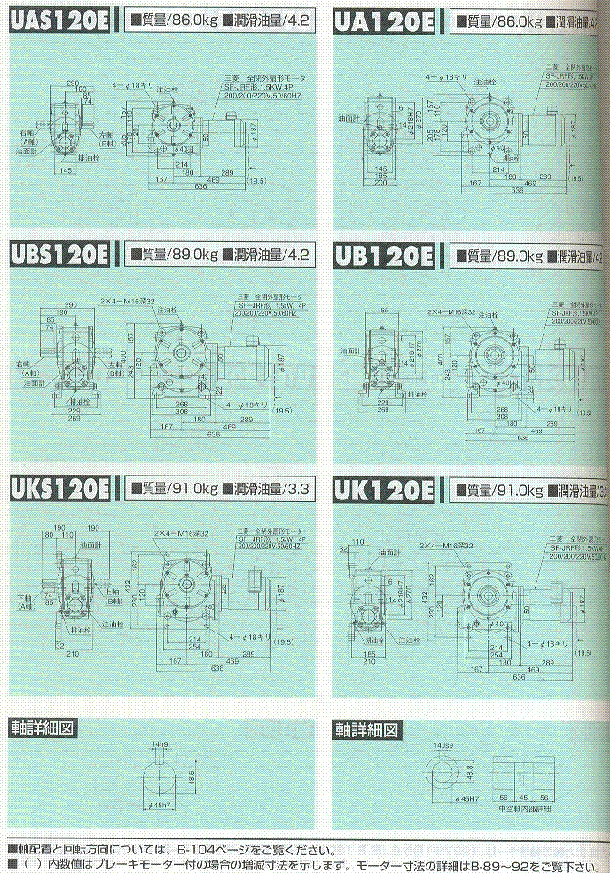 F/U/AF/AOF系列120E(二段式蝸輪減速機(jī))外形尺寸表 1