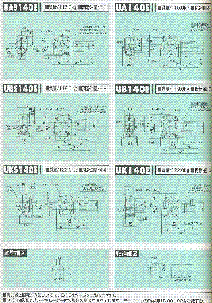 F/U/AF/AOF系列140E(二段式蝸輪減速機(jī))外形尺寸表 1