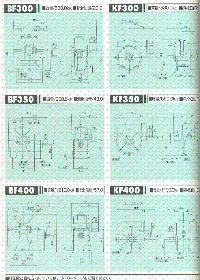 F/U/AF/AOF系列300,350,400(二段式蝸輪減速機(jī))外形尺寸表