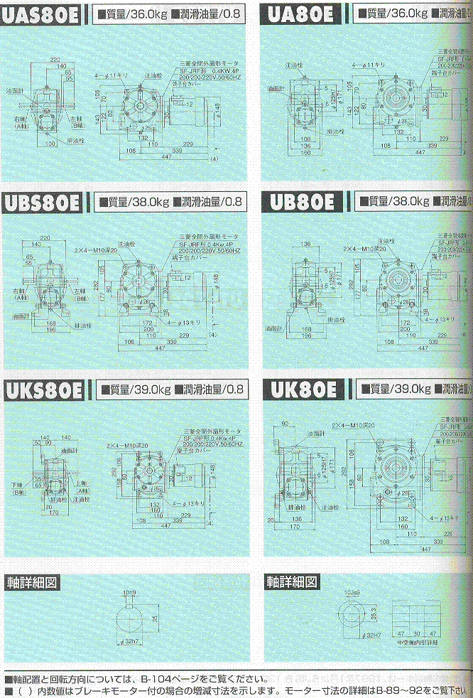 F/U/AF/AOF系列80E(二段式蝸輪減速機(jī))外形尺寸表 1