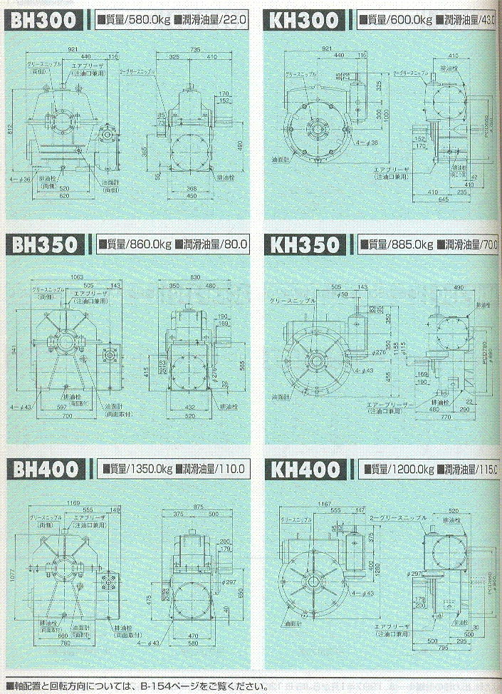 H系列300,350,400(二段式蝸輪減速機)外形尺寸表