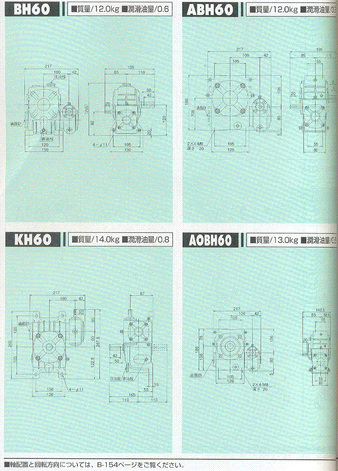 H系列60(二段式蝸輪減速機(jī))外形尺寸表 1