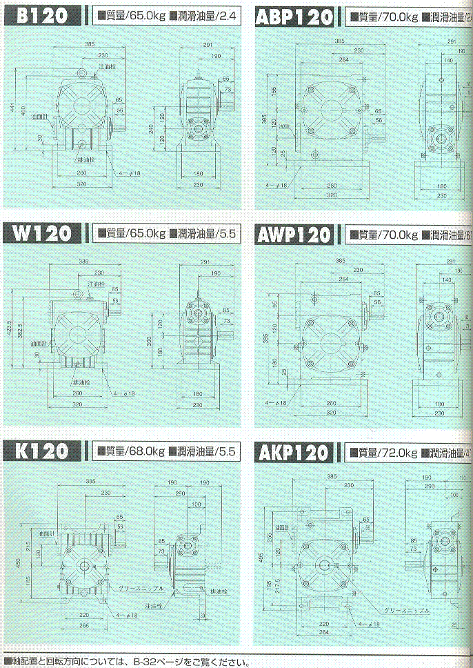 S•A•AO系列120(一段式蝸輪減速機)外形尺寸表 1