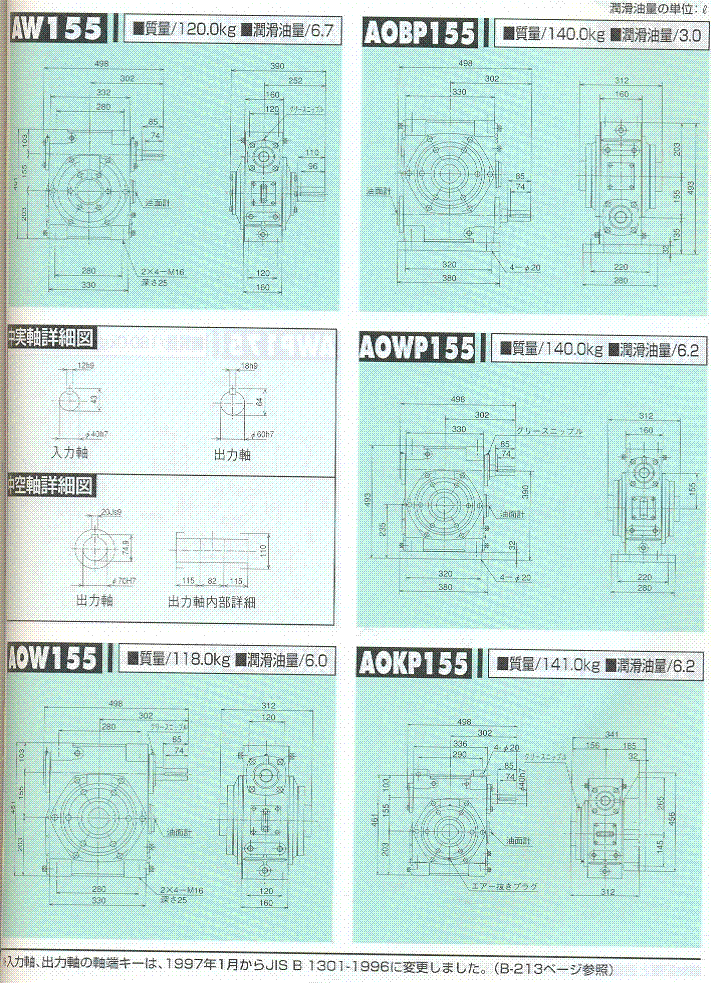 S/A/AO系列155(一段式蝸輪減速機)外形尺寸表 2