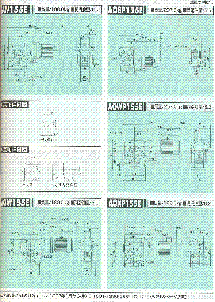 S/A/AO系列155E(一段式蝸輪減速機)外形尺寸表 2