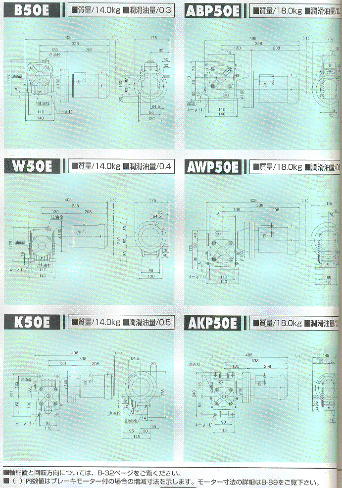 S/A/AO系列50E(一段式蝸輪減速機)外形尺寸表 1