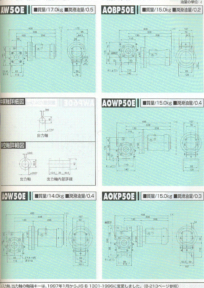 S/A/AO系列50E(一段式蝸輪減速機)外形尺寸表 2