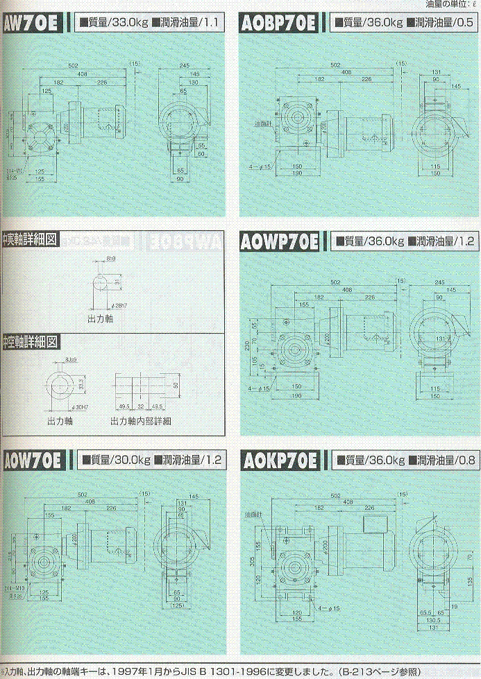 S/A/AO系列70E(一段式蝸輪減速機)外形尺寸表 2