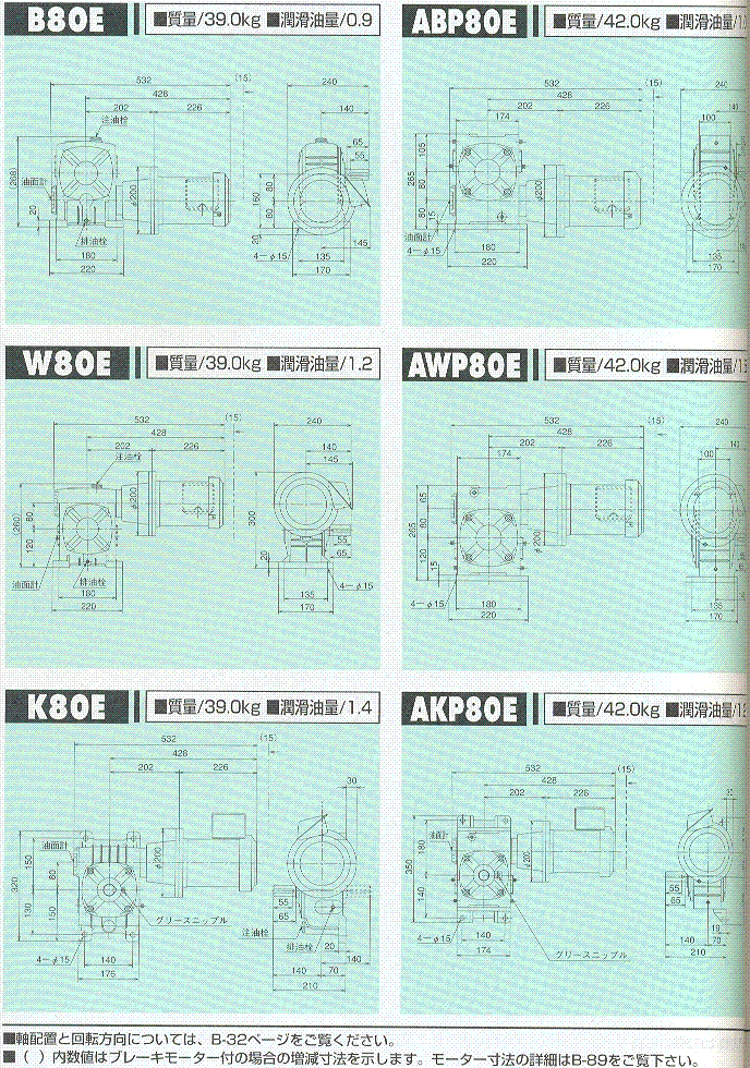 S/A/AO系列80E(一段式蝸輪減速機(jī))外形尺寸表 1