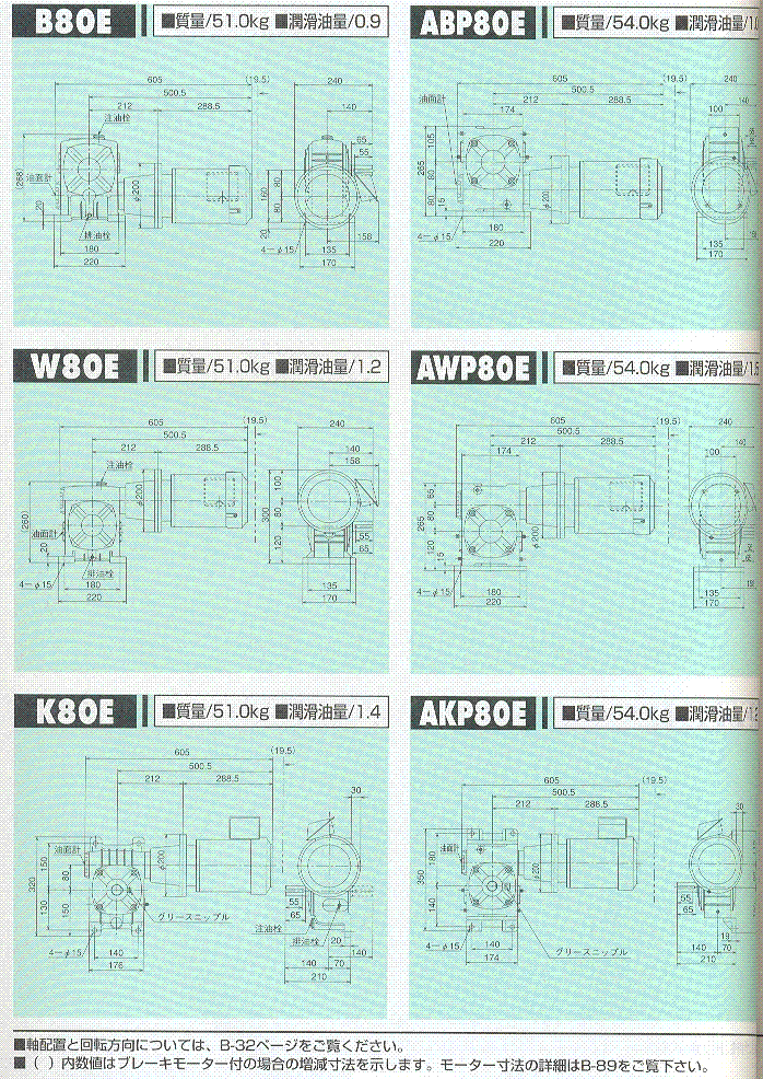 S/A/AO系列80E(一段式蝸輪減速機)外形尺寸表 1