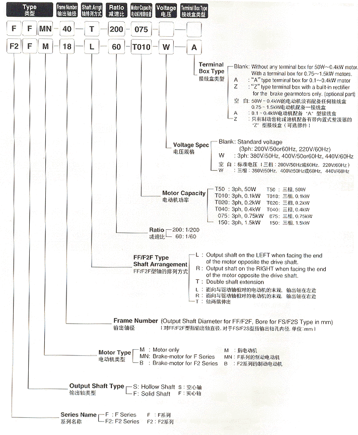直交同心實(shí)心軸 FF/F2F 系列 型號(hào)表示