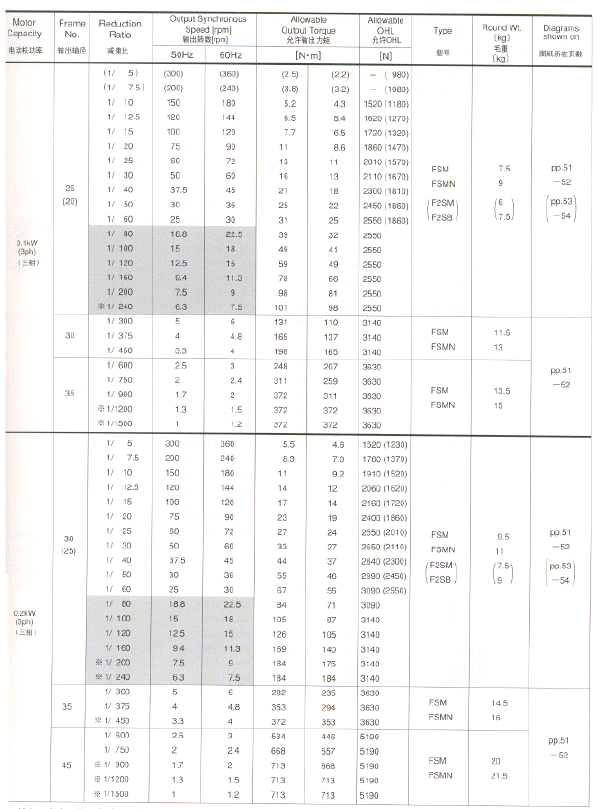 注意:性能表中括號里面的數(shù)值是F2S型