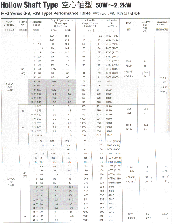 注意:性能表中括號(hào)里面的數(shù)值是F2S型