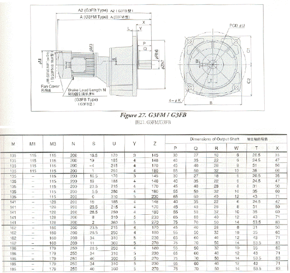 2.以上圖表給出了帶A型接線盒的齒輪減速機(jī)的規(guī)格