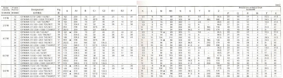 2.以上圖表說明了帶T型接線盒的齒輪減速機的規(guī)格