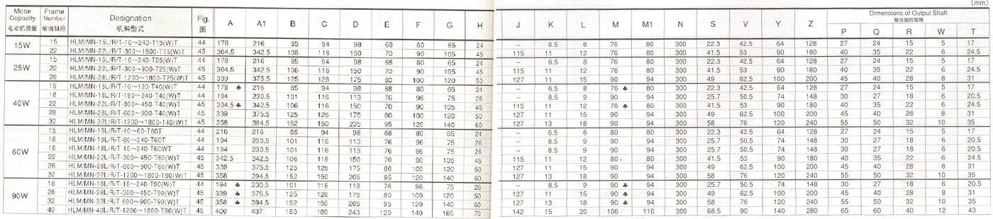 3.以上圖表給出了A型接線盒的齒輪減速機(jī)的規(guī)格