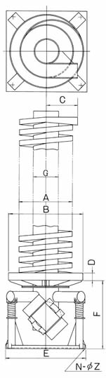 RVES型螺旋式升降機系列 ■標準式樣 形式 輸送能力 (T/Hr) 振動モータ仕様 揚程 (m) 重量 (kg) 適用制御器 形式 容量 (kw) 極數(shù) (P) 臺數(shù) RVES- 500-1.5 2.5 RV- 44D 0.4 4 2 1.5 300 ORV-44X2R RVES- 650-3 4 RV- 78B 0.75 8 2 3 650 ORV-78X2R RVES- 780-4.5 5 RV-158B 1.5 8 2 4.5 1000 ORV-158X2R RVES- 860-6 6 RV-228B 2.2 8 2 6 1500 ORV-228X2R RVES-1000-7.5 8 RV-378B 3.7 8 2 7.5 2000 ORV-378X2R RVES-1200-8.5 10 RV-558B 5.5 8 2 8.5 3000 ORV-558X2R RVES-1500-10 12 RV-758B 7.5 8 2 10 4000 ORV-758X2R RVES-2000-5.6 20 RV-5512B 5.5 12 2 5.6 8000 - ■外形寸法図 ■寸法表 単位:mm 形式 A B C D E F N-Z G RVES- 500-1.5 500 750 280 50 600 610 4-15 268 RVES- 650-3 650 1000 350 80 900 880 4-15 318 RVES- 780-4.5 780 1100 420 100 1100 950 8-18 406 RVES- 860-6 860 1200 450 120 1300 1100 8-18 457 RVES-1000-7.5 1000 1400 550 150 1500 1350 8-15 508 RVES-1200-8.5 1200 1600 670 170 1700 1400 10-18 610 RVES-1500-10 1500 2000 800 200 2000 1450 10-18 711 RVES-2000-5.6 2000 2600 1400 300 2500 1800 14-23 1000 關(guān)閉窗口