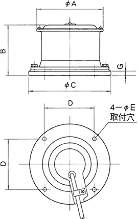 橡膠彈簧振動機(VG系列) ■標準式樣:ゴムスプリングバイブレータVG形 形式 電壓 (V) 周波數(shù) (Hz) 振動數(shù) (VPM) 沖擊力 (kg) 電流(200V時) (A) 電壓X電流 (VA) 重量 (kg) 適用制御器 (形式) VG-60 200/220 50/60 3000/3600 300 1.8 360 20 C4-5B VG-80 200/220 50/60 3000/3600 600 3 600 35 C4-5B ■外形尺寸圖:ゴムスプリングバイブレータVG形